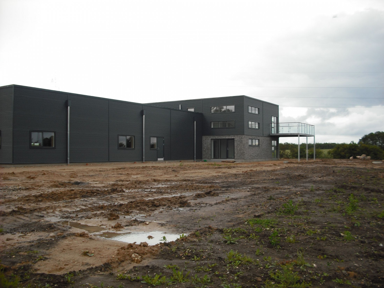 Opførsel af ny fabrik med showroom og administration efter brand.